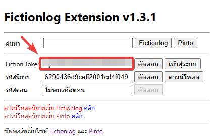 เปิดเว็บ Pinto และ Login ให้เรียบร้อย จากนั้นก๊อปปี้ Fiction Token จาก Fictionlog Extension